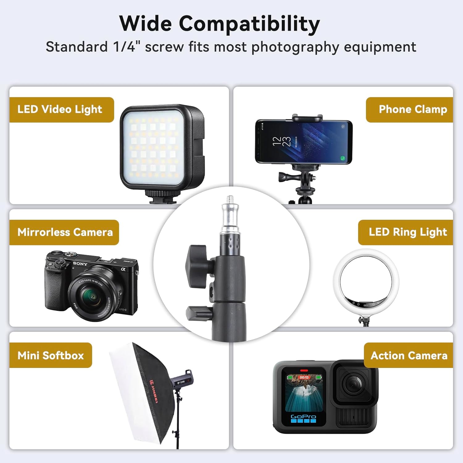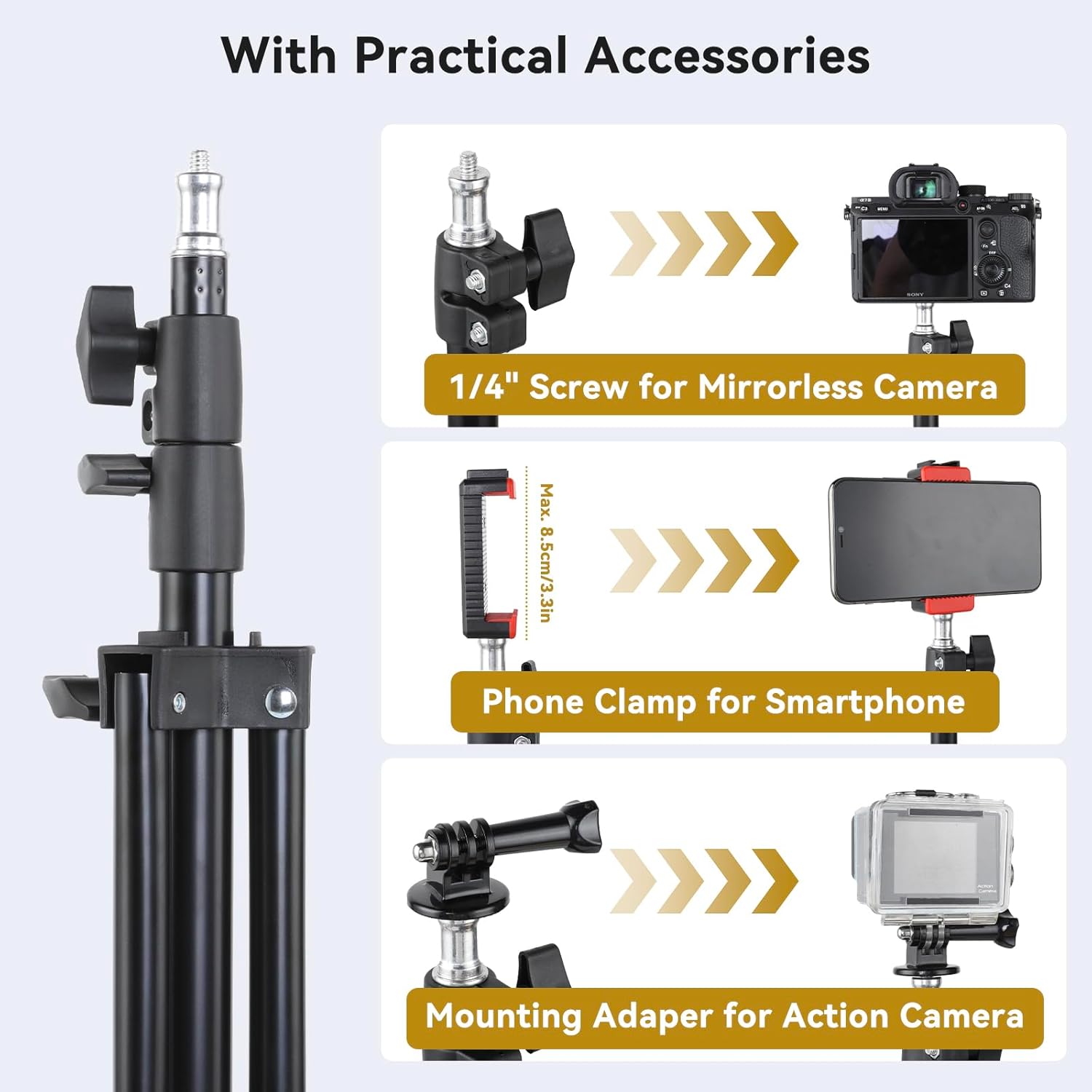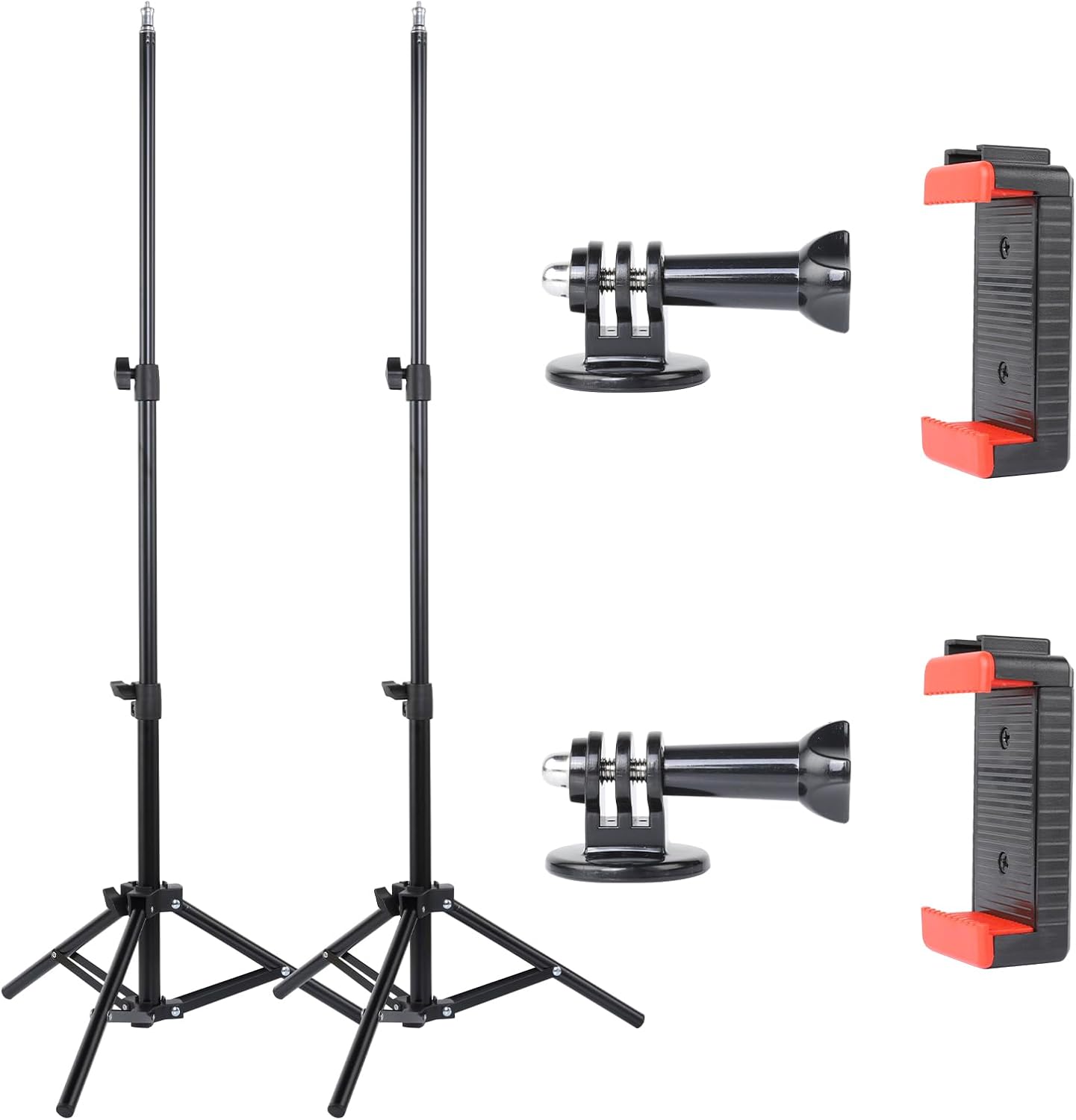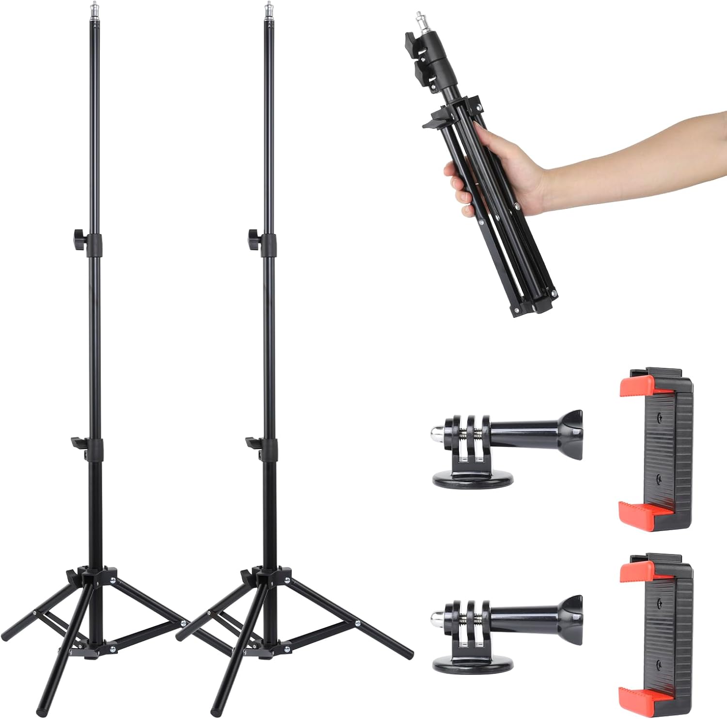 Introducing the UTEBIT 2 Pack Photography Light Stands Tripod, your ultimate solution for professional-quality lighting on the go. These adjustable aluminum lighting stands extend up to 45 inches (3.7 feet), providing the perfect height for all your photography and videography needs. Designed for versatility, each stand comes equipped with a phone clamp and a camera mount adapter, making it easy to switch between devices for seamless shooting.